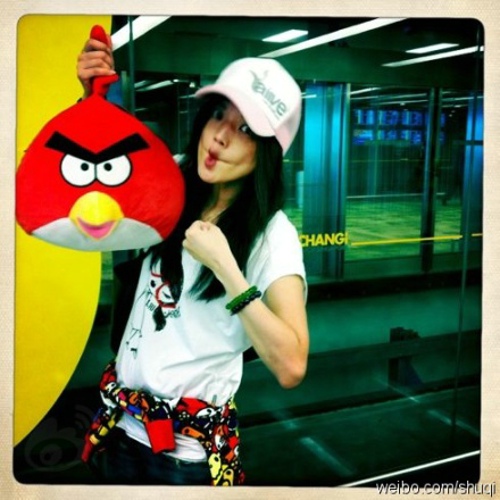 舒淇的微博里多是“艳照”,除此看点之外早前还有与余文乐的打情骂俏,很是肉麻。而这张自比愤怒的小鸟的照片,你能看出这是性感的舒淇吗?
